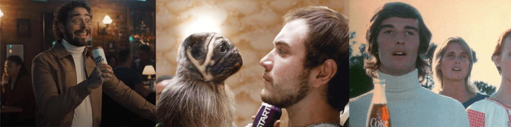 I think the influence of this commercial changed the landscape of advertising for products that are as popular as Coca-Cola. What is very smart about it is that it doesn’t appear evident as if a company is trying to sell its product blandly. Even more so, it doesn’t exude a company’s desperation for the consumer’s money, and nor was it bland in telling you to buy their product without any facts – because that’s not what kind of ad it should be. Everyone knows what Coca-Cola is, and having it be one of the biggest recognizable brands in the world, and there’s no reason why they need to tell you what it is. What they did instead made a catchy jingle that could stick in someone’s brain while knowing it’s an advertisement for a type of product that isn’t going to immediately encourage the consumer to go out and buy a coke. Also, the commercial seems to appeal to the young adult crowd and could influence older viewers to have a soda to make them feel nostalgic. It’s an advertisement that makes the product stay in the back of your mind whenever you go out, influencing you to buy the product. The Puppy Monkey Baby Ad from Mountain Dew or the Post Malone Bud-Light Seltzer Commercials are very similar. It doesn’t directly tell the consumer to purchase the product, but it possibly influences the viewer to buy it. The crazy catchy jingle and the weird animal mashup you see in the puppy monkey baby commercial is so strange, but it adheres to capturing the viewers’ attention. The Post Malone ad features a celebrity, showcases the new bud light seltzer, and has a comedic sci-fi narrative play on how the body reacts when drinking the product – and yet it captures your attention from using those three creative factors into it. While the newest commercials are more comedic examples than the coke ad, they all represent a common good you can buy almost anywhere. They are promoting a product that has a method to stick into viewers’ heads to influence them to purchase the product possibly.